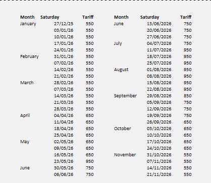 Please Click here for a booking form.